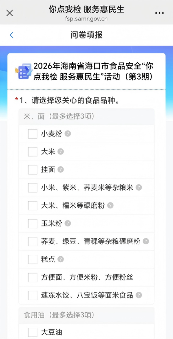海口市市场监督管理局正式启动2026年“3·15”国际消费者权益日食品安全 “你点我检 服务惠民生” 活动(第3期),面向全市征集民意。您来“点单”,我来“检验”,把食品抽检的指挥棒交到您手里!