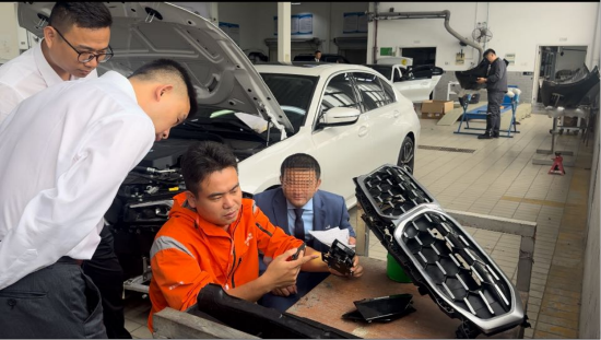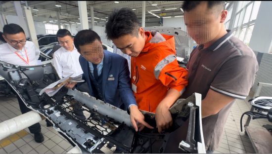 查勘定损过程中,定损员与维修店专业人员对车辆受损部位进行细致拆解、全面查勘,本着“公平、公正、透明”原则,精准核定损失、科学给出修换建议。张旭日总现场督导服务标准,强调定损工作必须坚守诚信底线,保障消费者知情权、选择权与公平交易权,确保理赔结果客观公允。经过高效沟通协商,最终与客户达成一致。