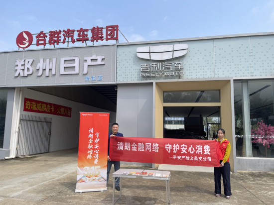 关注为切实提升企业员工的金融素养,增强风险防范意识,构建和谐健康的金融消费环境,3月11日,平安产险文昌支公司宣传人员走进文昌合昌汽车销售服务有限公司,开展以“清朗金融网络,守护安心消费”为主题的2026年“3.15”金融消费者权益保护教育宣传活动。