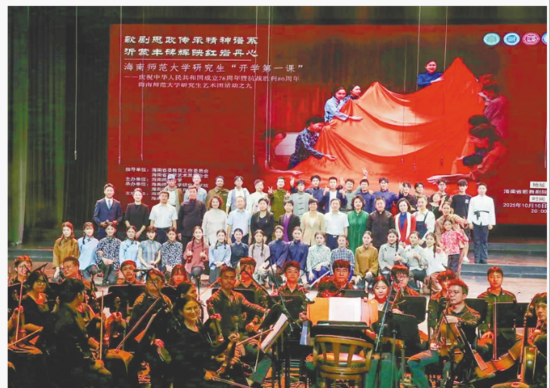 在省歌舞剧院,海南师范大学一场融合“思政讲授+歌剧演绎”的开学第一课拉开帷幕,全体研究生共同聆听校领导讲思政课,沉浸式感受红色歌剧的艺术魅力,在理论与艺术的交融中开启新一年的校园生活。
