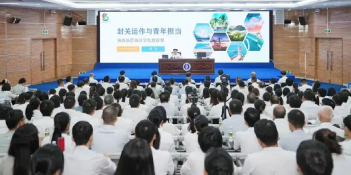 2025年10月15日上午,省委书记冯飞走进我校,以《封关运作与青年担当》为题,向全省高校师生代表讲授思政课,同时也对学校发展寄予了殷切希望,指出省里将支持热海院建成全国一流的海洋大学,也希望学校扛起全省“向海图强”的责任担当。冯飞书记的这堂思政课为广大师生积极参与中国特色自由贸易港建设提供了思想指引和行动指南。