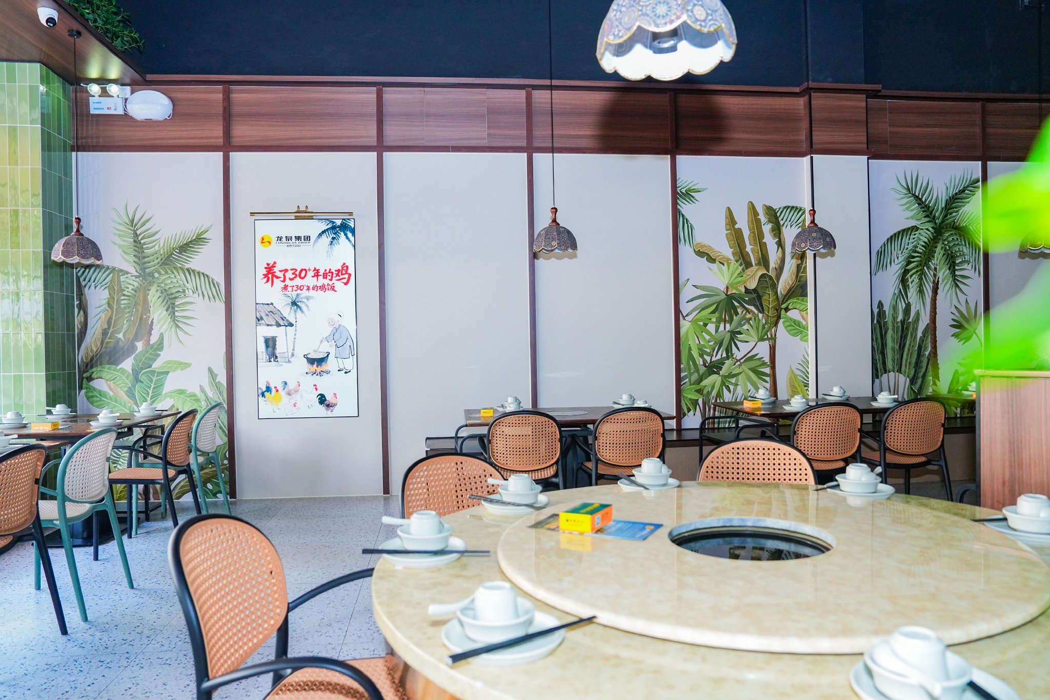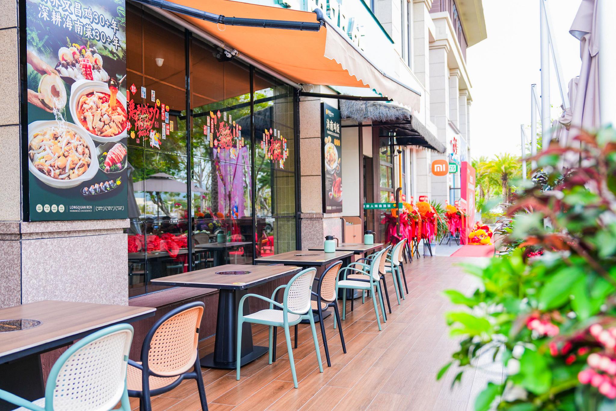 龙泉人海南鸡饭三亚海棠湾店,坐落于三亚市海棠区红龙路喜棠商业广场一层A8号。门店以南洋风情为设计核心,深度融合海南本土韵味,热带绿植错落点缀,复古细节巧思铺陈,将南洋的慵懒惬意与海南的热情爽朗完美交融,沉浸式用餐氛围感拉满。餐厅规划170个舒适餐位,布局灵活多元,既有适合家庭欢聚的圆桌,也有适配休闲小聚的靠窗卡座,为食客打造惬意舒心的用餐体验。菜品体系主打龙泉白切鸡、香烤脆皮文昌鸡、椰子鸡三大招牌,搭配创意海南融合菜系列。团队在坚守海南传统风味本真的基础上,融入现代烹饪理念与当下口感需求,所用水文昌鸡均来自集团自有养殖基地,传承三十余年的龙泉白切鸡以古法工艺烹制,搭配秘制蘸料,尽显正宗海南味。
