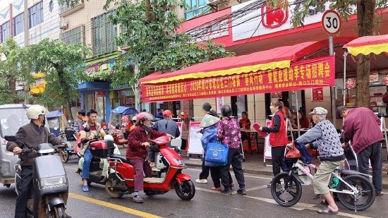 3月19日上午,海口市琼山区三门坡镇文明街上,一场小型但气氛热烈的招聘会正在举行。这是海南就业驿站海口三门坡站精心组织的“春风送岗促就业 真情相助暖民心”2026年琼山区“春风行动”暨就业援助季线下小型招聘会。