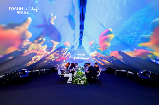 图说:今年消博会,复星旅文以“光影织梦,山海无界”为主题,让观众能快速体验“一秒进入度假”的氛围,感受品牌倡导的高品质度假意境。